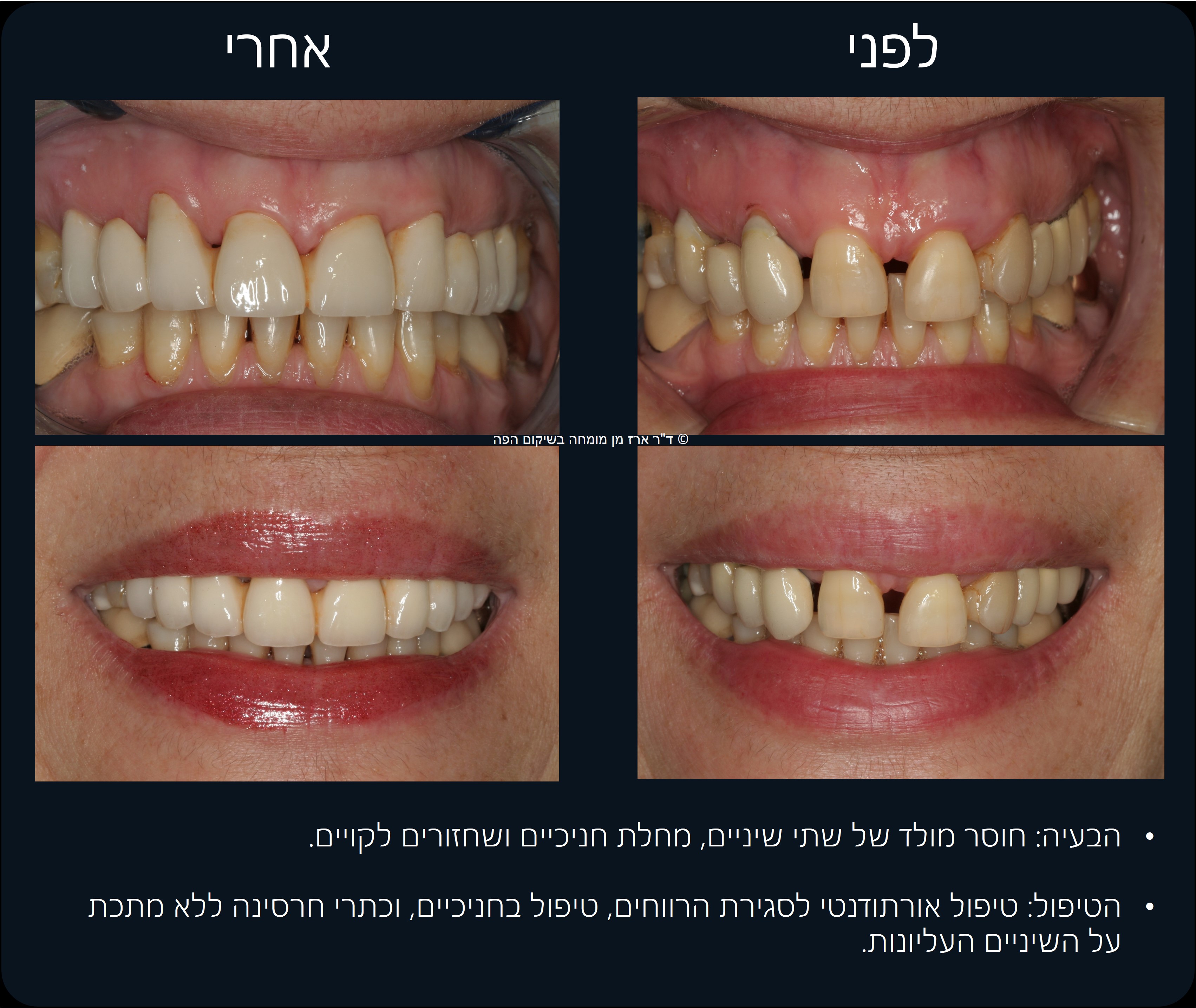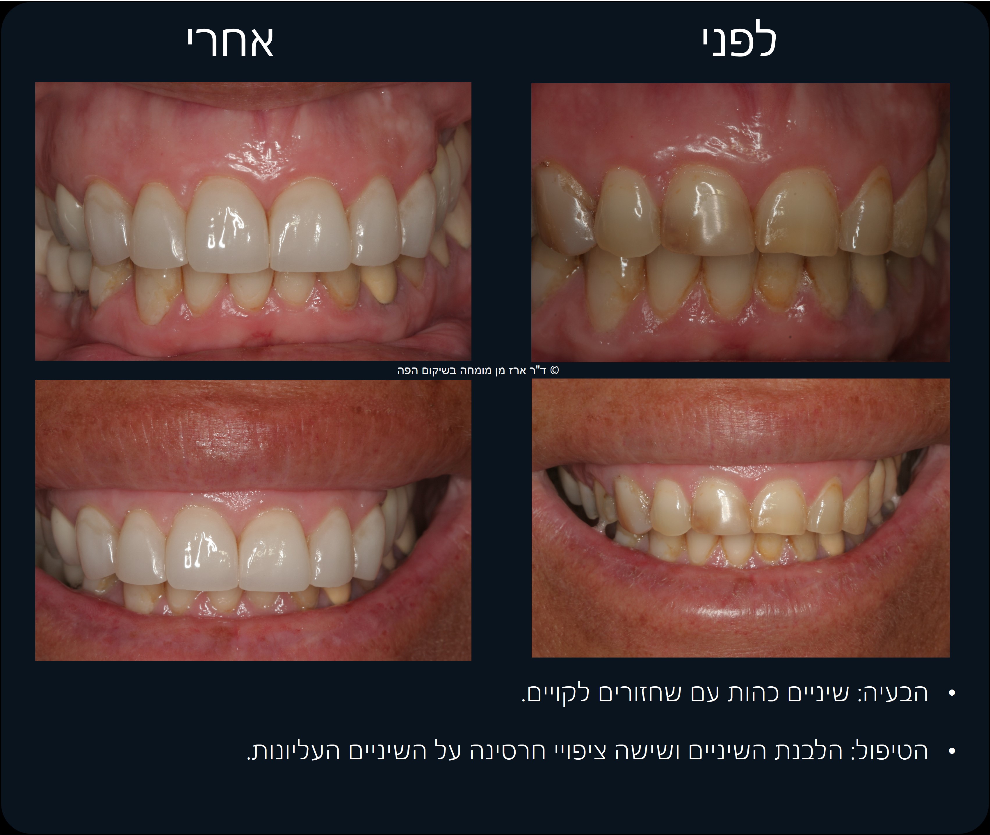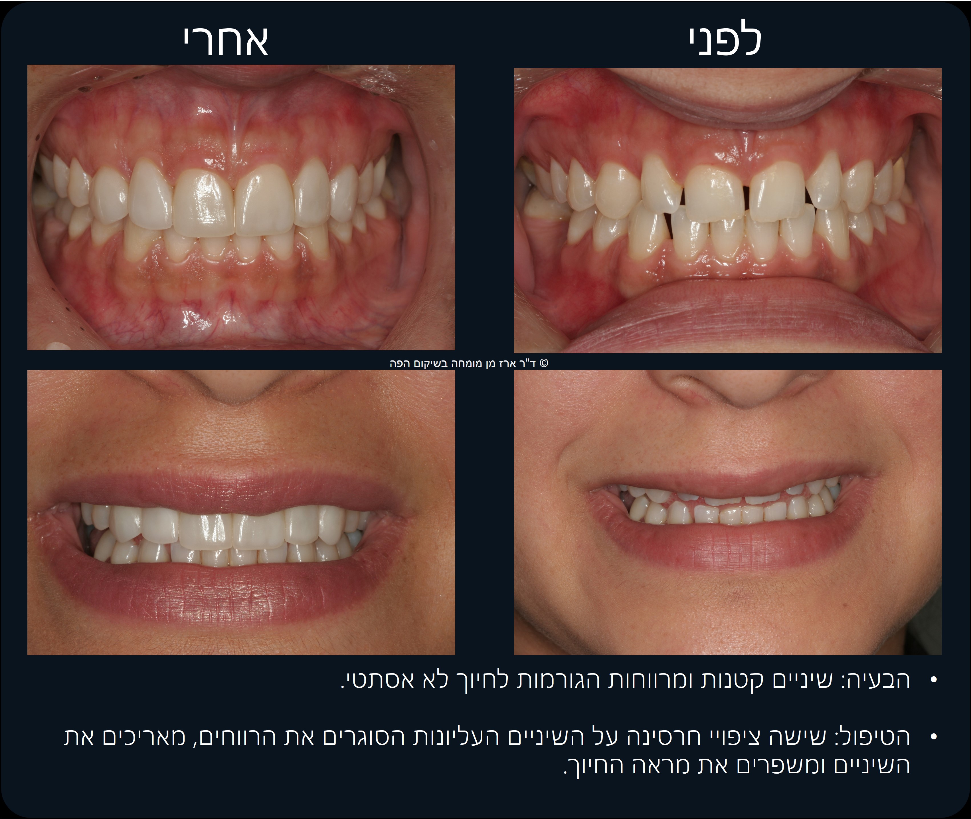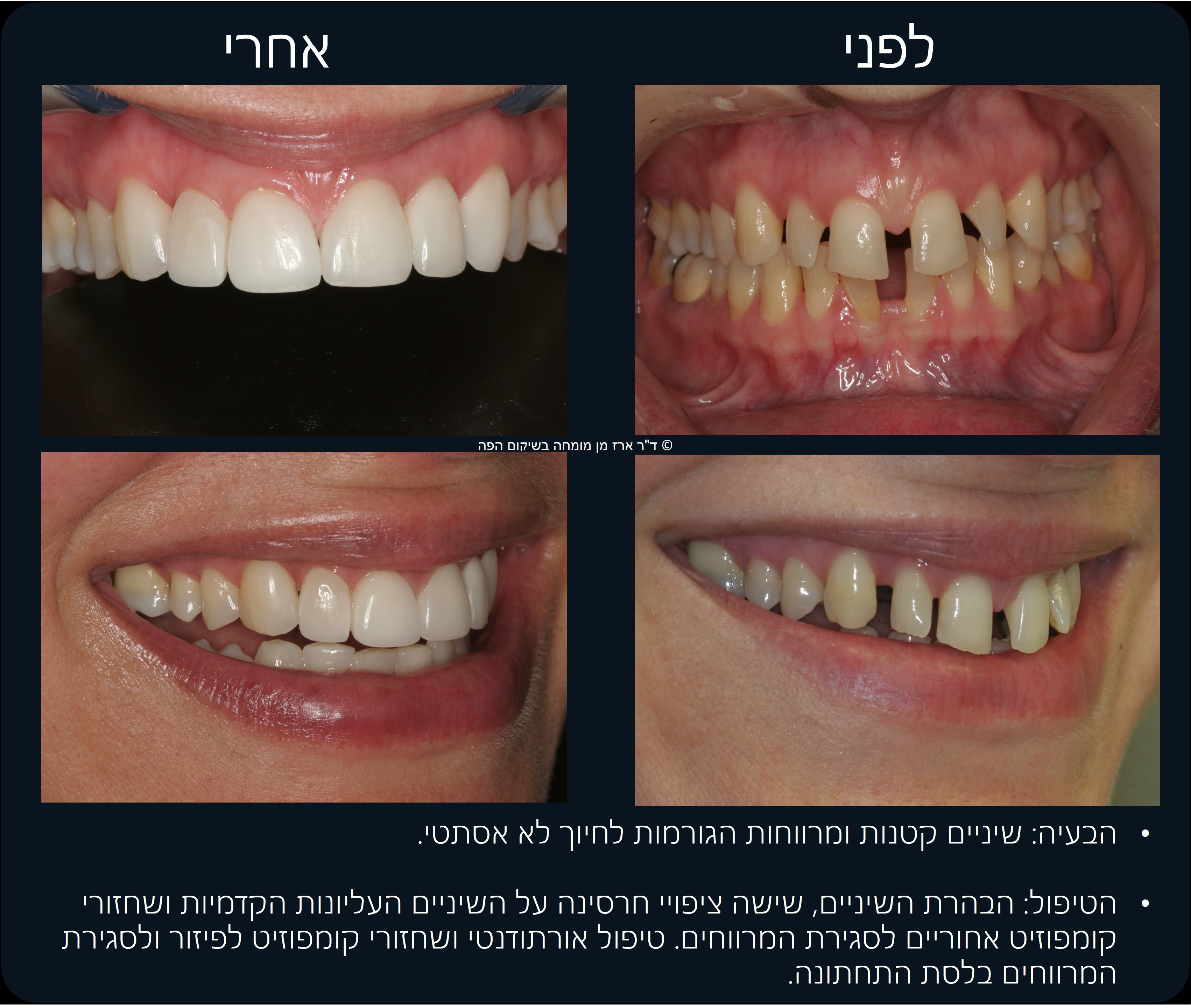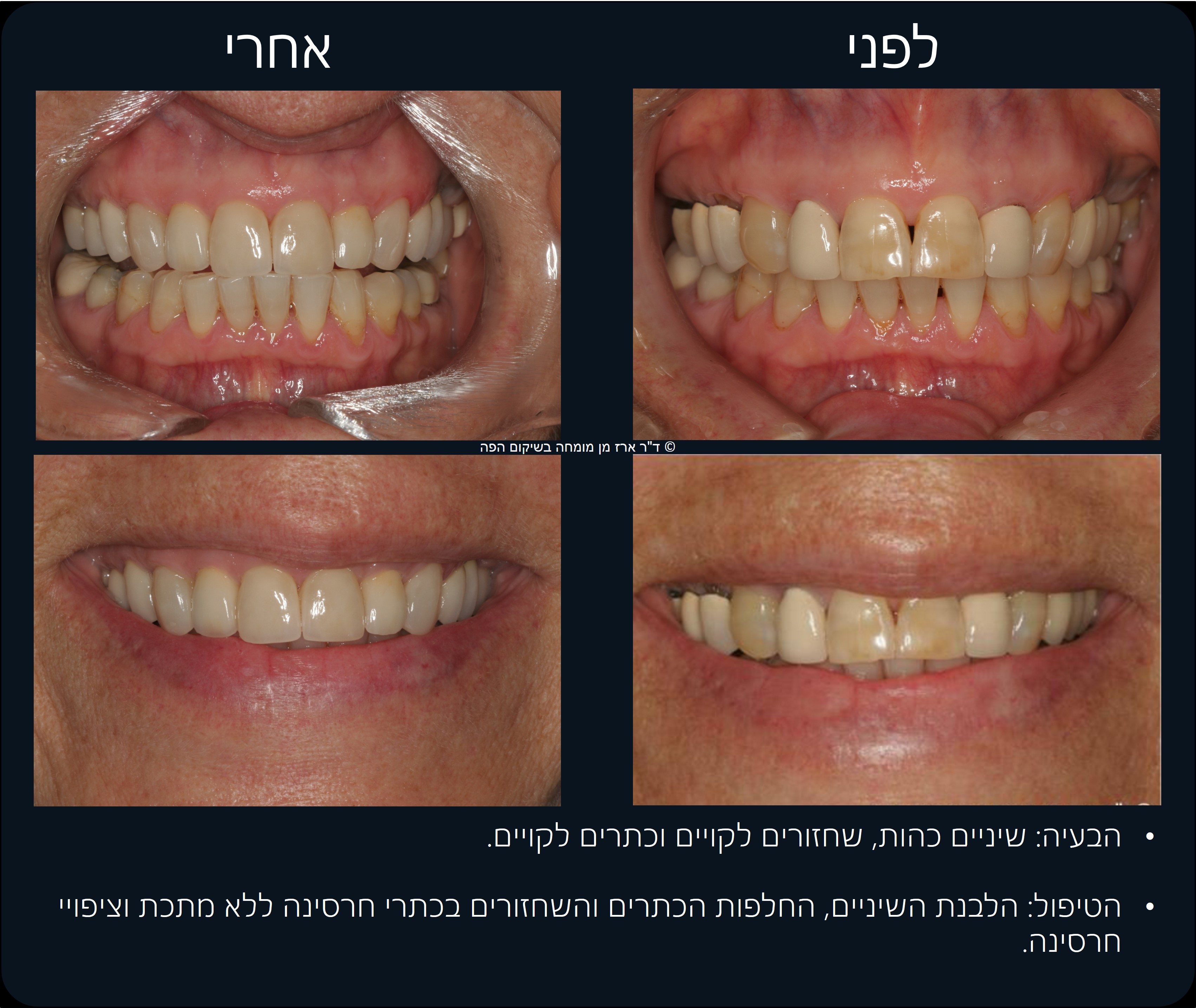 טיפולים מסוג זה מחייבים שימוש באמצעים המתאימים ובהתבסס על הבנה מעמיקה בתפקוד מערכת הלעיסה, ניסיון קליני נרחב והספרות המחקרית העדכנית.